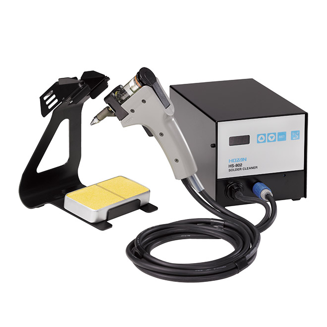 HS-802 DESOLDERING STATION ■Power cord:1.8 mRated voltage / frequency100V AC, 50 / 60HzPower consumption170 WHeaterCeramic heaterSetting temperature360 to 480 ℃Standard heater unitHS-812PumpDiaphragm typeMax. vacuum-80 kPaExternal dimensionsStation135(W) × 129(H) × 200(D)mmWeightStation2.3 kgSoldering iron170 g